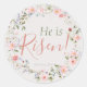Pegatina Redonda Elegante Pascua Cristiana 'He is Risen'