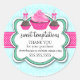 © Socialite Designs Inc. Selle sus paquetes de cocción con estos elegantes pegatinas que tienen un diseño de pasteles y pasteles. El fondo tiene un toque turquesa y una cinta rosa vibrante.