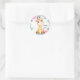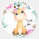 Pegatina Redonda Elegante Peonia Rosa y una jirafa deliciosa gracia