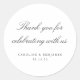 Elegante Personalizado de la invitación a la boda clásica clásica clásica tradicional Gracias Pegatina redondo clásico en blanco con tipografía negra