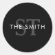 Pegatina Redonda Elegante Personalizado de Monograma Inicial Blanco