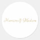 Elegante guión de personalizado fino dorado y blanco caligrafía nombres de moda favorita la boda Pegatinas clásicos redondos. Diseño minimalista, sencillo y elegante. Disponible en muchas formas y tamaños.