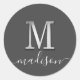 Pegatina Redonda Elegante Personalizado plateado Monograma M Nombre