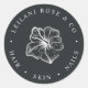 Etiquetar la correspondencia de su negocio o los productos con estos pegatinas de moda que coinciden con nuestra suite de marca con el logo de Hibiscus Flower para peluqueros, salones, boutiques o cualquier negocio en la playa o en la isla. Los ricos pegatinas negros blandos presentan un falso ilustracion de flores de Relieve metalizado plateado hibisco en el centro, con dos campos de texto circulando por el exterior, con letras blancas clásicas.