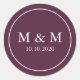 Pegatina Redonda Elegante Plum Purple Boda Clásico Monograma