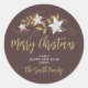 Pegatina Redonda Elegante Poinsettia tradicional Feliz Navidad