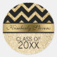 Pegatina Redonda Elegante Purpurina de oro Negro Chevron-Graduacion
