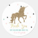 Pegatina Redonda Elegante Purpurina de oro Unicornio, estrellas