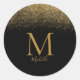 Pegatina Redonda Elegante Purpurina dorado Monograma Nombre