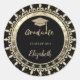 Pegatina Redonda Elegante Purpurina Gold Grad Cap,Confetti