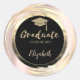 Pegatina Redonda Elegante Purpurina Gold Grad Cap, negro, oro Rosa