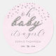 Pegatina Redonda Elegante Purpurina Rosa Chica Baby Shower Gracias