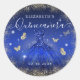 Pegatina Redonda Elegante Purpurina Royal Blue Gold Gown Quinceañer