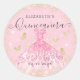 Pegatina Redonda Elegante Purpurina Rubor Rosa Gold Gown Quinceañer