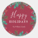 Pegatina Redonda Elegante Red Happy Holidays Wreath Family Name