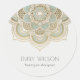 Pegatina Redonda Elegante Relieve metalizado dorado Ornate Verde az