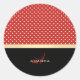 Pegatina Redonda Elegante rojo y negro, Golden Hearts Nombre Monogr