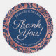 Elegante Rosa Borde Floral Dorado Gracias Boda Clásico Pegatina Redondo. Un diseño elegante y ornamentado con cortes de oro rosa sobre azul marino. Hay suites completas que coinciden, por favor, eche un vistazo a la colección. Si necesitas ayuda o quieres algo más en el mismo diseño, por favor haz clic en el botón azul del mensaje de abajo para enviarme un mensaje.