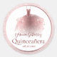 Pegatina Redonda Elegante Rosa Dorado Vestido Quinceañera