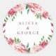 Pegatina Redonda Elegante rosas burdeos rosa favorecen la boda