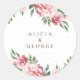 Pegatina Redonda Elegante rosas burdeos rosa favorecen la boda clás