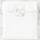 Diseñado para coordinar con nuestra colección de boda de flores blancas polvorientas rústicas acuarela dorada, esta etiqueta redonda de boda personalizable presenta flores blancas acuarela y hojas verdes combinadas con una fuente elegante en dorado. personalice el nombre de la Novia y el Novio y la fecha de la boda. Parte de la colección de boda de flores blancas polvorientas elegantes