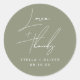 Pegatina Redonda Elegante Sage Green Script Love + Gracias Boda