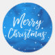 Pegatina Redonda Elegante Script acuarela Blue Merry Christmas