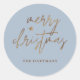 Pegatina Redonda Elegante Script Feliz Navidad Estrella Dorada Azul
