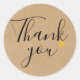 Pegatina Redonda Elegante Script Gold Heart Rustic Kraft Gracias