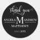 Pegatina Redonda Elegante Script Gracias | Boda blanco y negro