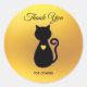 Silueta elegante y sofisticada de gato negro con corazón sobre fondo dorado Gracias pegatina. Ideal para fiestas de cumpleaños, graduación, negocios y más.