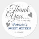 Pegatina Redonda Elegante Silver Blue Sweet 16 Cumpleaños Gracias