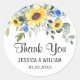 Pegatina Redonda Elegante Sunflowers Eucalyptus Watercolor Boda