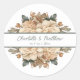Pegatina Redonda Elegante Taupe Con Boda Floral Verde