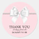Pegatina redonda clásica de agradecimiento con tema Tiffany en rosa elegante. Mimar a la futura mamá con una fiesta de bebé con tema Tiffany. Esta pegatina se puede utilizar en papelería, bolsas de favores, regalos y premios para crear una fiesta de bebé chic, moderna y retro para la futura mamá que lo tiene todo. La combinación de rosa femenino, con perlas y un lazo blanco coordina con nuestras invitaciones de fiesta de bebé con tema Tiffany, decoración de fiesta, vajilla y más.