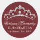 Pegatina Redonda Elegante Tiara Burgundy Quinceañera Española Quinc