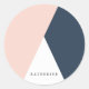 Pegatina Redonda Elegante triángulos geométricos rosa y azul marino