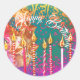 Pegatina Redonda Elegante turquesa con velas Feliz cumpleaños