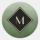 Muestra tu clase interna con elegantes y elegantes pegatinas de monograma verde y negro. Este sencillo y sofisticado diseño de gradiente cepillado con un marco moderno en forma de diamante con un borde dorado se puede personalizar añadiendo tu inicial monogramada. Imagen plana impresa, NO metálica.