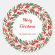 Pegatina Redonda Elegante Wreath Red Holly Berries Gold Merry Xmas