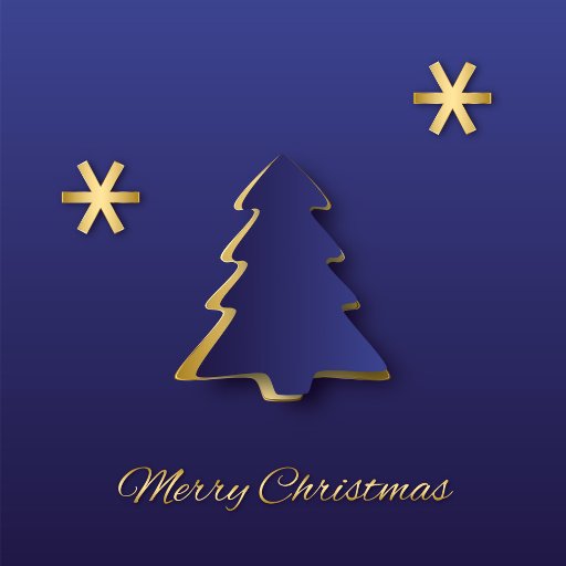 Elegante ilustracion de Navidades con un sencillo y limpio árbol de Navidad azul con copos de nieve dorados. El diseño de este arte de papel es moderno, festivo, minimalista y profesional.