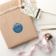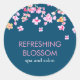 Moda elegante flor de cerezo pegatina redondo clásico con flor de cerezo rosa bonito en un fondo azul con texto rosa y blanco para que usted lo pueda personalizar con su propio nombre o mensaje. Ideal para marca, envasado o como pegatinas a favor con fines promocionales.
