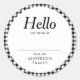 Estos pegatinas de reuniones familiares de moda presentan un diseño contemporáneo y elegante con el nombre de su familia personalizado en una tipografía moderna sobre mantas Vichy en blanco y negro. Los pegatinas dicen "hola" junto con una línea para que cada miembro de la familia escriba su nombre. Decoración fiesta perfecta para su celebración familiar moderna.