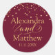 Pegatina Redonda Elegante y personalizado Burgundy Gold Boda Classi