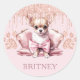 Pegatina Redonda Elegante y personalizado perro chihuahua con Purpu