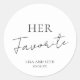 Pegatinas de bodas blancas y negras con un diseño simple y minimalista con "Su Favorito" con la palabra "Favorito" en un guión elegante junto con sus nombres y fecha de boda. Un diseño moderno que combina con cualquier estilo boda. Estos pegatinas personalizados son geniales para poner los dulces favoritos de la novia o tentempiés como parte de una bolsa de comida / favores de boda.