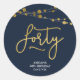 Este elegante pegatina redondo de 40 años presenta hilos de luces y la palabra "Cuarenta" en Relieve metalizado de oro falso contra un fondo azul oscuro. Consulte otros elementos coincidentes aquí https://www.zazzle.com/collections/strings_of_lights_faux_gold_celebration_collection-119311942951401241?rf=238364477188679314 Personalícelo con sus detalles reemplazando el texto del marcador de posición. Para obtener más opciones, haga clic en el botón "Personalizar". *Tenga en cuenta que la marca de agua Zazzle que aparece en la vista previa del zoom NO aparecerá en el producto impreso final. © Rosewood y Citrus