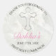 Celebra la Primera Comunión Santa de tu hija con amigos y familia agradeciéndoles con este elegante mármol falso y rosa Primera Comunión, gracias pegatina. Este diseño presenta una bonita cruz de plata con un sencillo texto negro sobre un fondo blanco de mármol. Personalizar el texto y la letra a su gusto. Hay otras fuentes y estilos disponibles. Por favor, contáctenos con su solicitud especial y nos complacerá ayudarle.