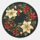 Pegatina Redonda Elegantes Floraciones Rojas y Crema de Poinsettia